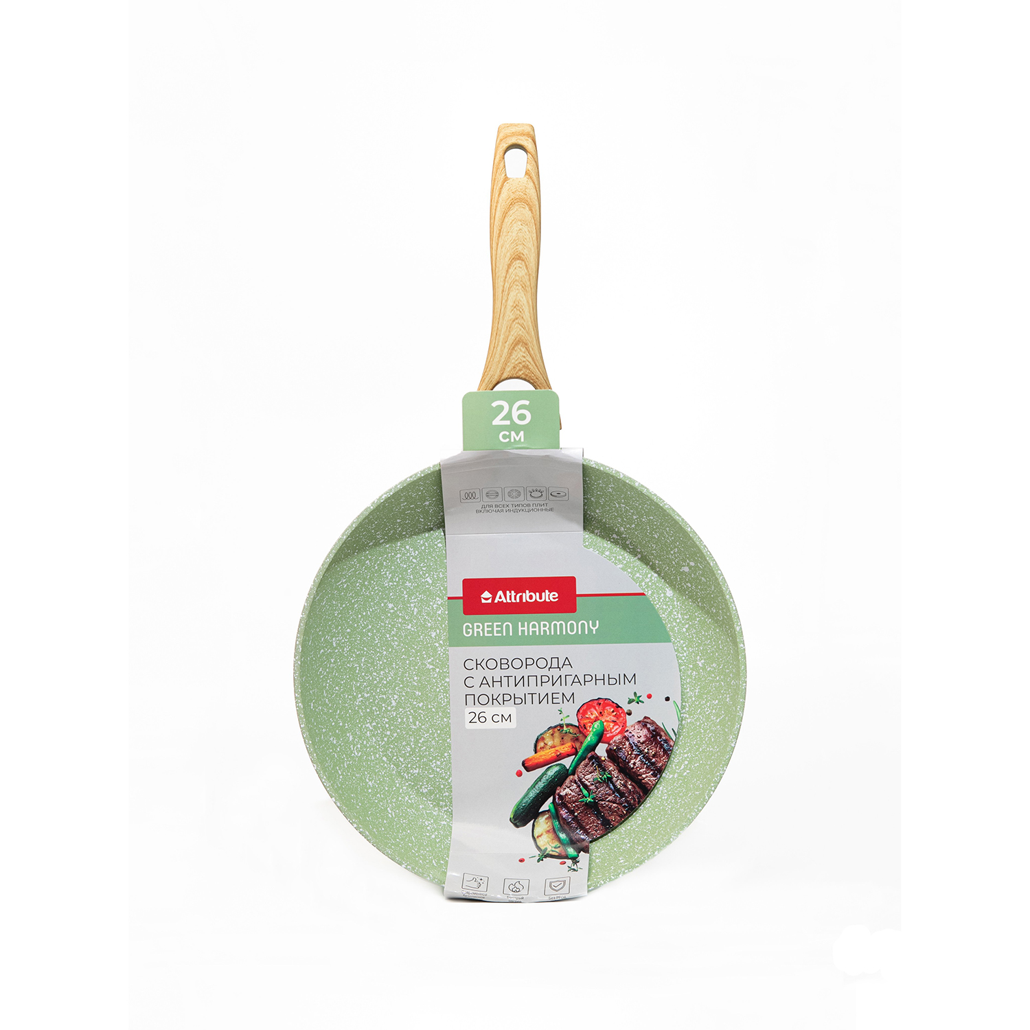 Сковорода серии GREEN HARMONY изготовлена из кованого алюминия. Имеет особо прочное и износостойкое двухслойное антипригарное покрытие DIAMOND. Верхний слой покрытия обеспечивает высокие антипригарные свойства и легкость очистки сковороды. Нижний слой прочно фиксирует антипригарное покрытие на поверхности посуды. Можно готовить пищу с добавлением малого количества масла или без него, подходит для ежедневного использования. Безопасное покрытие. Покрытие не содержит PFOA, свинца и кадмия, соответствует нормам на материалы, контактирующие с пищей. Подходит для всех типов плит, включая индукционные. Удобная ручка из термостойкого бакелита с покрытием soft-touch не выскальзывает из рук, не нагревается, имеет отверстие для подвешивания.