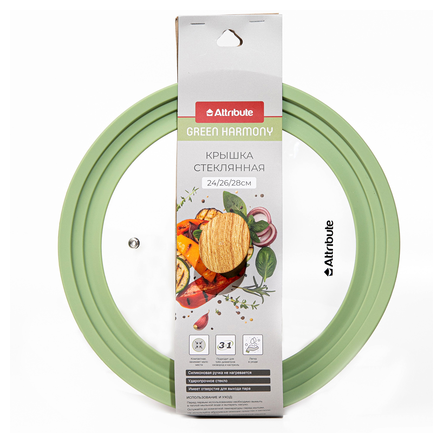 Крышка стеклянная ATTRIBUTE Green Harmony 24/26/28см