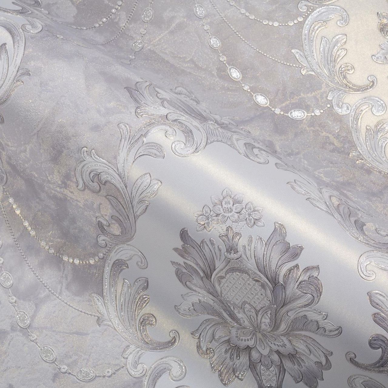 Коллекция выдержана в мягкой и сдержанной гамме: жемчужный, сливочный, серебристо-серый, нежный графит. Светлые оттенки делают комнату более просторной и воздушной, а в сочетании с филигранно проработанными узорами формирует атмосферу утонченности.