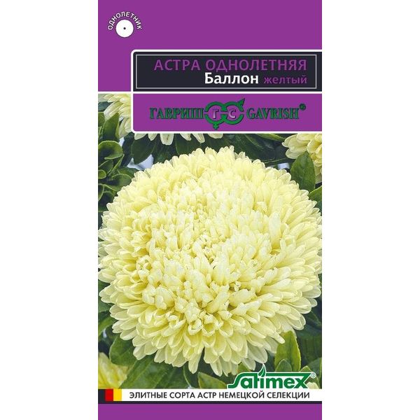 Легендарная серия астр Balloon (Воздушный шар) превосходит все известные сорта по степени махровости и плотности шаровидных соцветий. Растение пирамидальной формы, высотой 50-60 см с прочными цветоносами. На одном растении формируется до 6-8 соцветий изумительного ванильно-желтого оттенка, диаметром 9-13 см. Выращивают чаще всего рассадным способом. Семена высевают в марте-апреле, пикируют с развитием первой пары настоящих листочков по схеме 5х5 см, в открытый грунт рассаду высаживают с середины мая до начала июня. Возможен посев семян в открытый грунт ранней весной или под зиму с последующим мульчированием торфом или опилками. Блистательные астры серии Баллон отличаются великолепными срезочными свойствами, до двух недель стоят в воде, сохраняя декоративность. Прекрасно подойдут для оформления цветников.