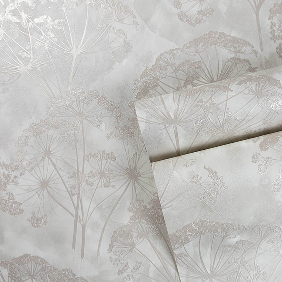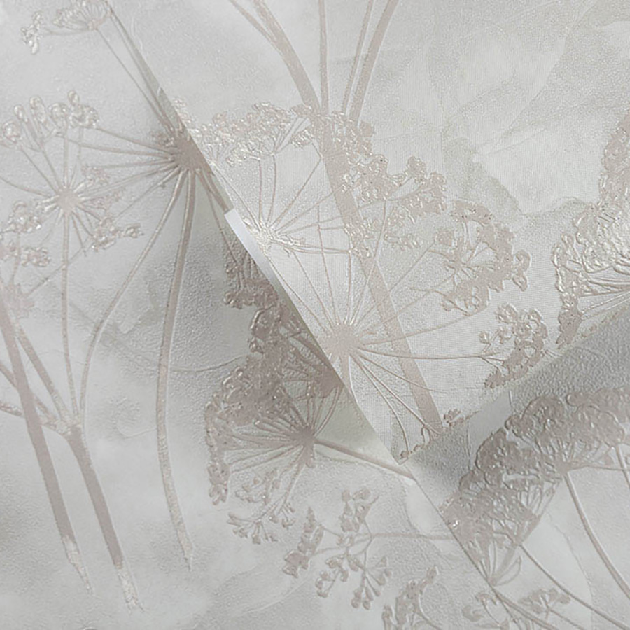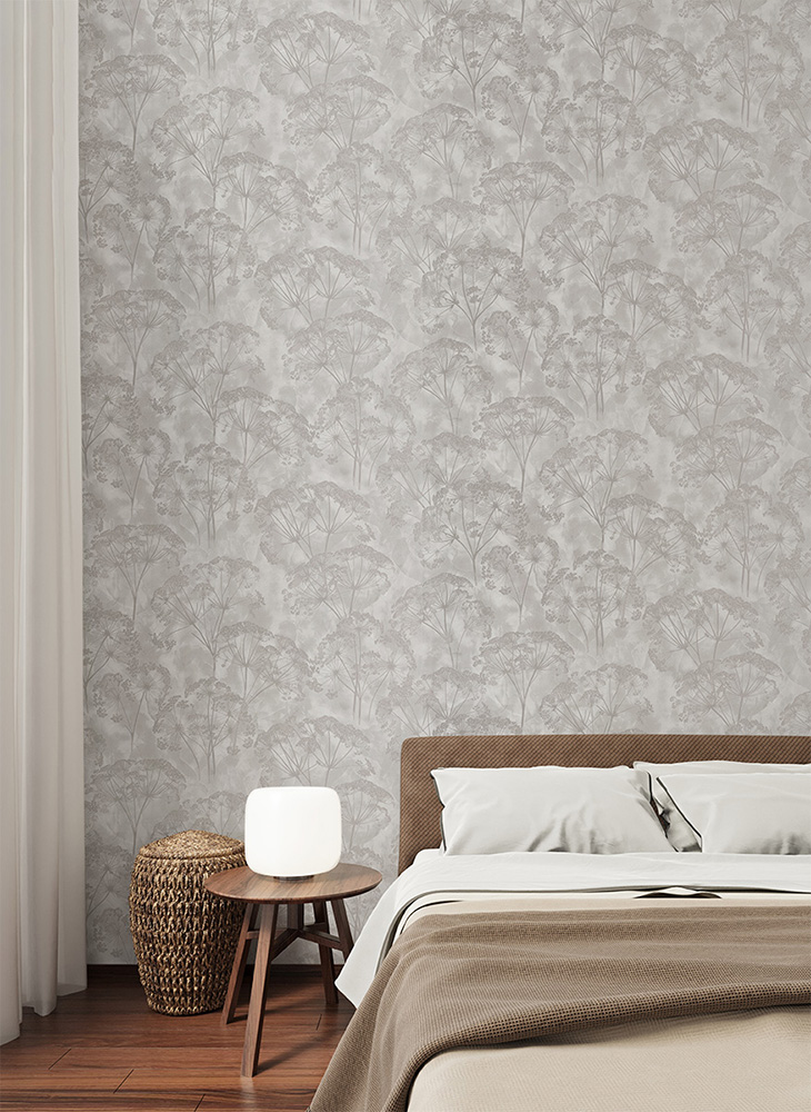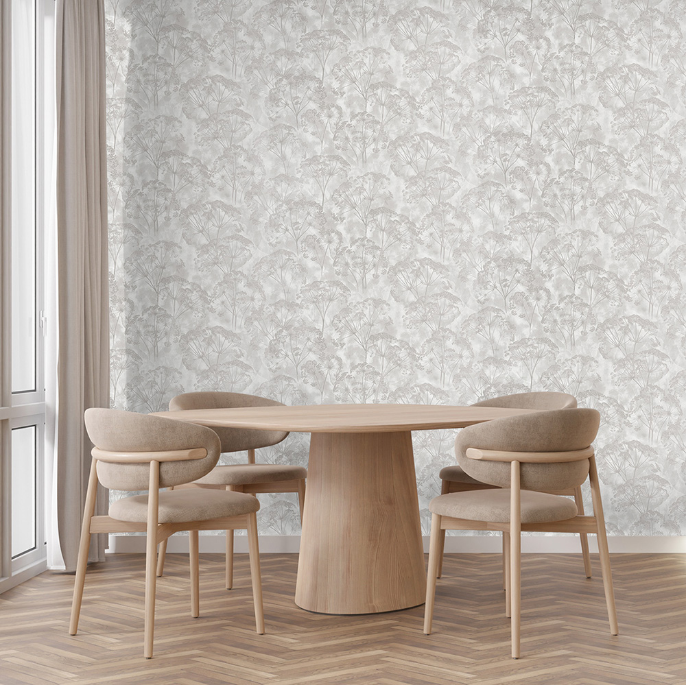Коллекция «Ангелика» берёт своё имя у травянистого растения — нежного и утончённого, словно созданного для того, чтобы напоминать о гармонии природы в интерьере. Рисунок раскрывается на фоне фактуры, напоминающей декоративную штукатурку под камень. На стеблях мягко играет интерферентная краска, подчёркивая их хрупкость и лёгкость, а на изящных зонтиках мерцают тонкие штрихи глиттера, словно капли росы.