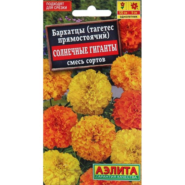 Семена АЭЛИТА Бархатцы Солнечные гиганты прямостоячие смесь сортов 0,1г