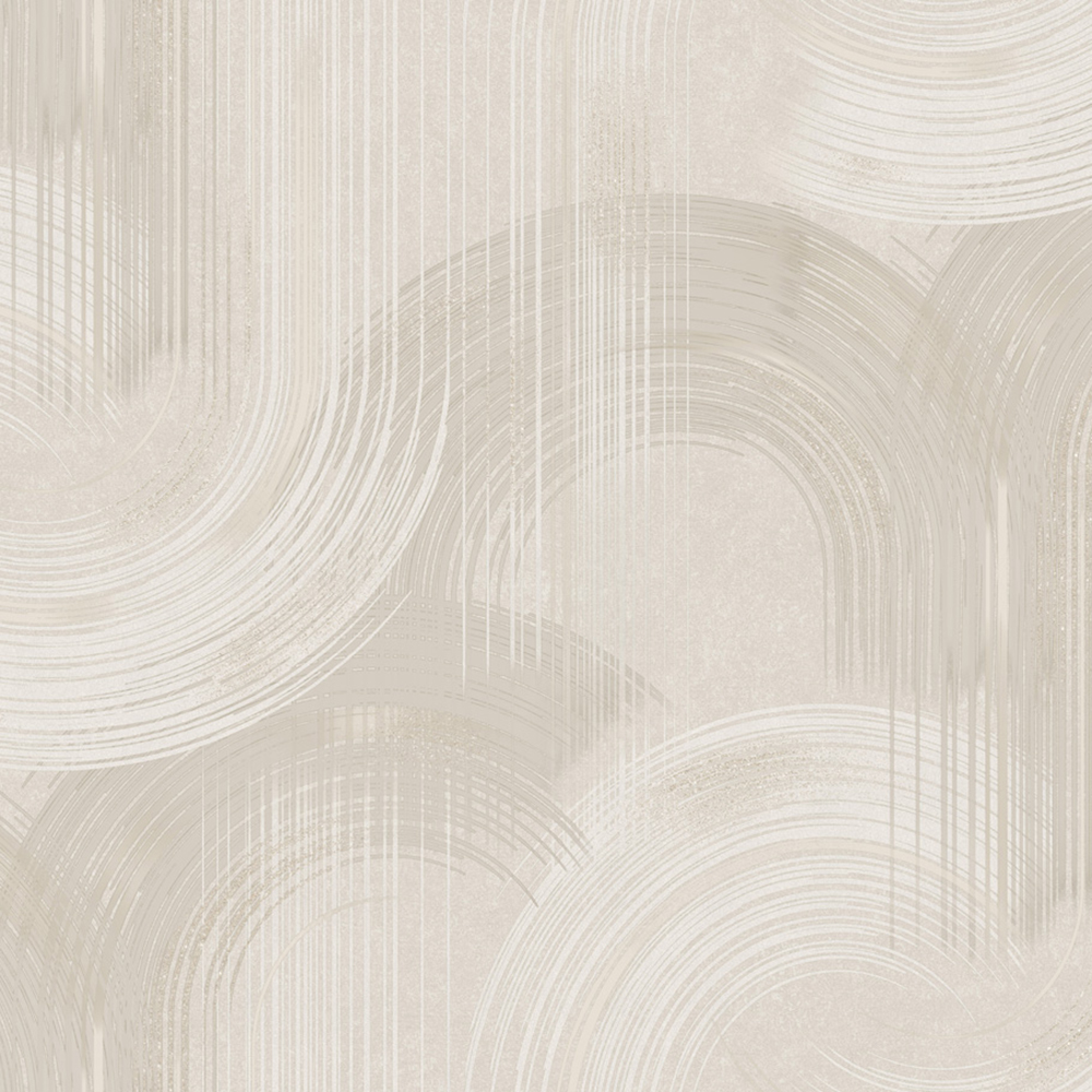 Тонкие перламутровые линии, словно солнечные блики, складываются в изящный абстрактный узор. В их плавных изгибах угадываются очертания арок — то ли воспоминание о старинных галереях, то ли намёк на современную интерпретацию классических форм. Особый шарм "Arcada" — в контрасте фактур. Сияющие мотивы гармонично соседствуют с матовыми компаньонами, поверхность которых напоминает дорогой велюр.