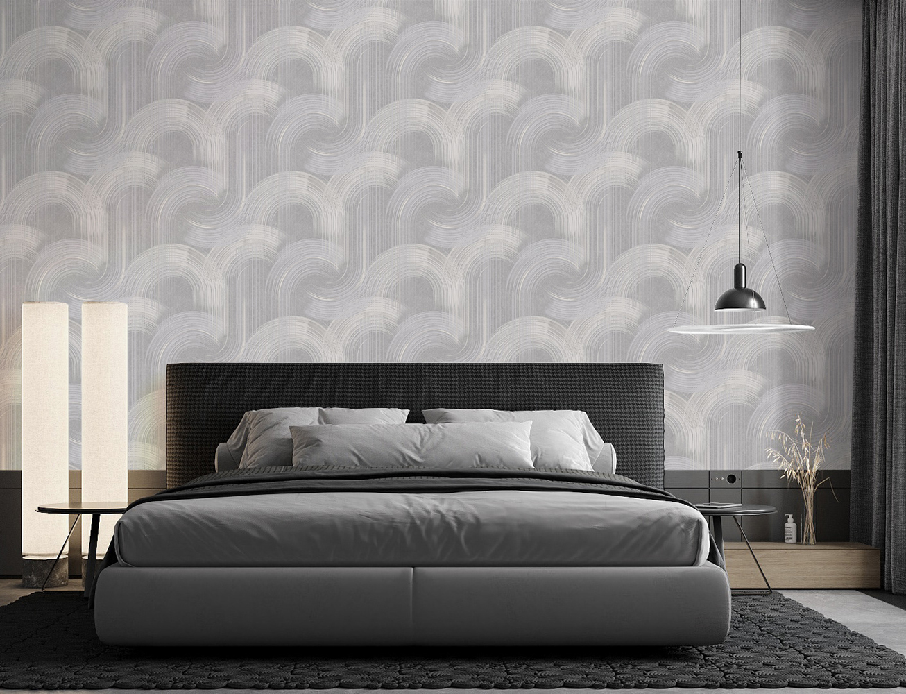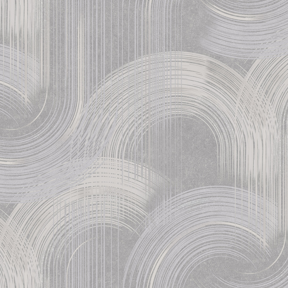 Тонкие перламутровые линии, словно солнечные блики, складываются в изящный абстрактный узор. В их плавных изгибах угадываются очертания арок — то ли воспоминание о старинных галереях, то ли намёк на современную интерпретацию классических форм. Особый шарм "Arcada" — в контрасте фактур. Сияющие мотивы гармонично соседствуют с матовыми компаньонами, поверхность которых напоминает дорогой велюр.