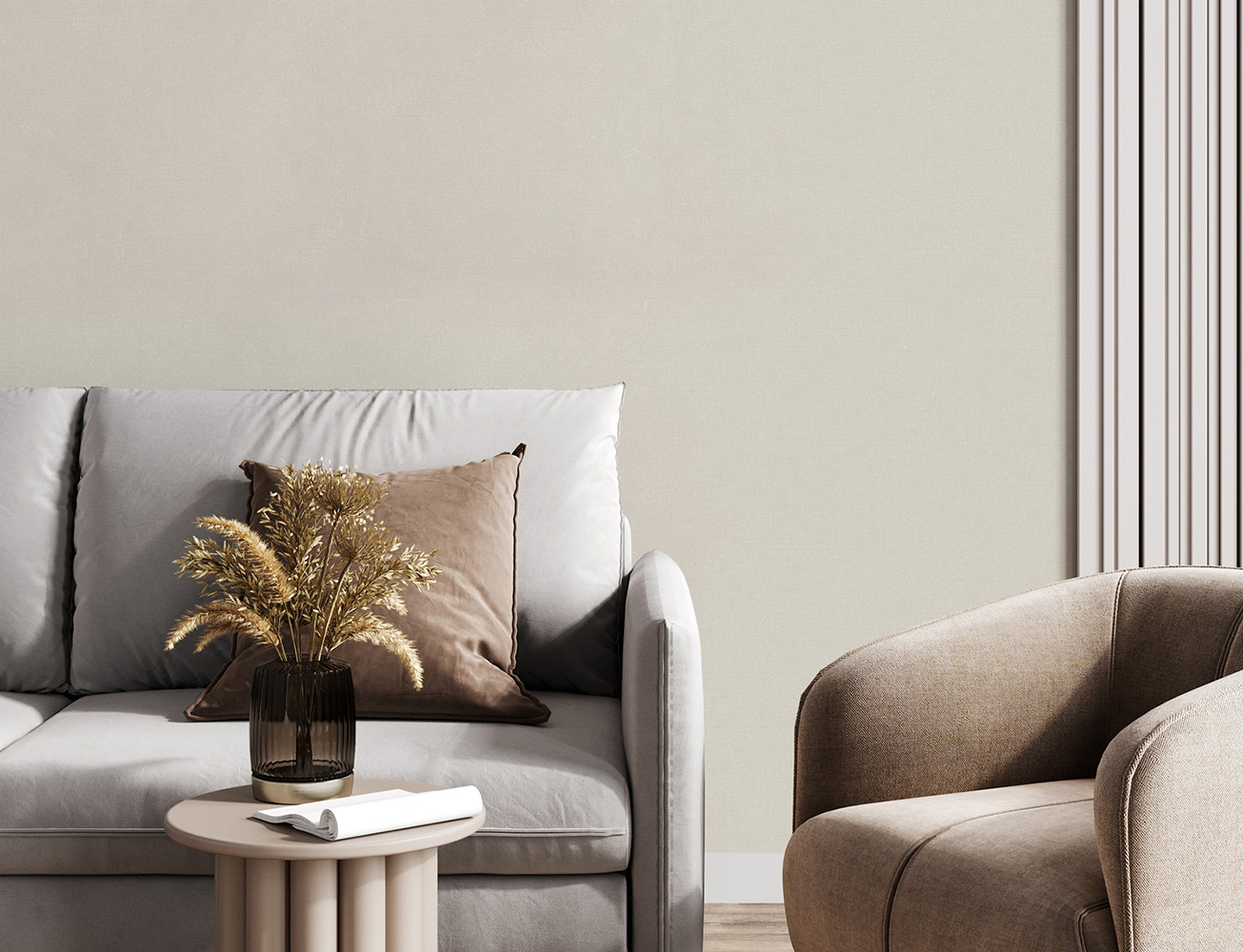 Тонкие перламутровые линии, словно солнечные блики, складываются в изящный абстрактный узор. В их плавных изгибах угадываются очертания арок — то ли воспоминание о старинных галереях, то ли намёк на современную интерпретацию классических форм. Особый шарм "Arcada" — в контрасте фактур. Сияющие мотивы гармонично соседствуют с матовыми компаньонами, поверхность которых напоминает дорогой велюр.
