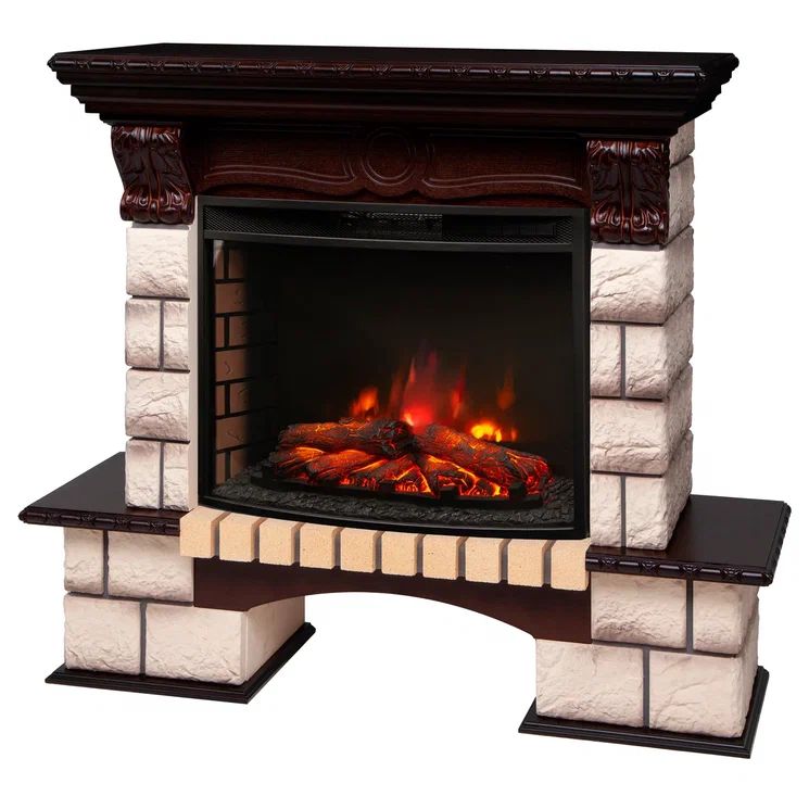 Камин выполнен в цвете античного ореха, который придает ему изысканный и стильный вид. Материал портала – камень, обеспечивающий прочность и долговечность конструкции. Верхняя панель изготовлена из МДФ, что делает ее легкой и устойчивой к повреждениям.