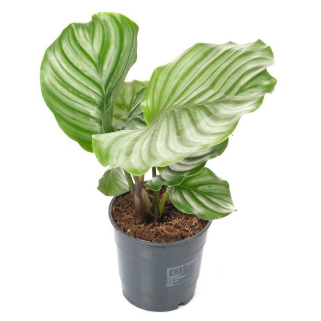 Калатея Орбифолия – тропическое декоративно-лиственное растение с крупными округлыми листьями, имеющими серебристо-зелёные полосы. Растение теплолюбивое, предпочитает рассеянный свет и высокую влажность.