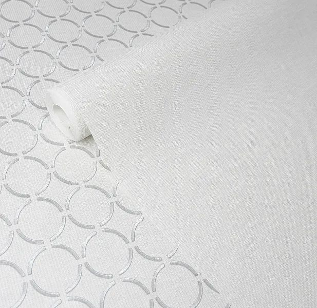 Серия представляет собой рисунок из металлизированных кругов на уютном текстильном фоне, выполненный в восьми актуальных оттенках: от ванили до темного шоколада. Ключевое преимущество — инновационная стыковка рисунка с шагом всего 6,4 см, что значительно упрощает поклейку и экономит материал. Фоны стыкуются без подгонки, делая процесс поклейки еще быстрее.