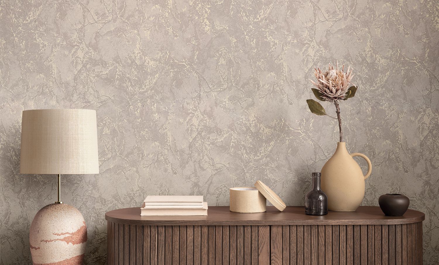 Рисунок новой коллекции Runo RENOWA будто создан природой — спонтанный, текучий, органичный, напоминает структуру камня. Фактура с мягким перламутровым сиянием придаёт поверхности глубину, создавая ощущение живого, дышащего пространства. Цветовая палитра коллекции — это благородные природные оттенки, они универсальны и гармонично сочетаются с большинством интерьерных решений.
