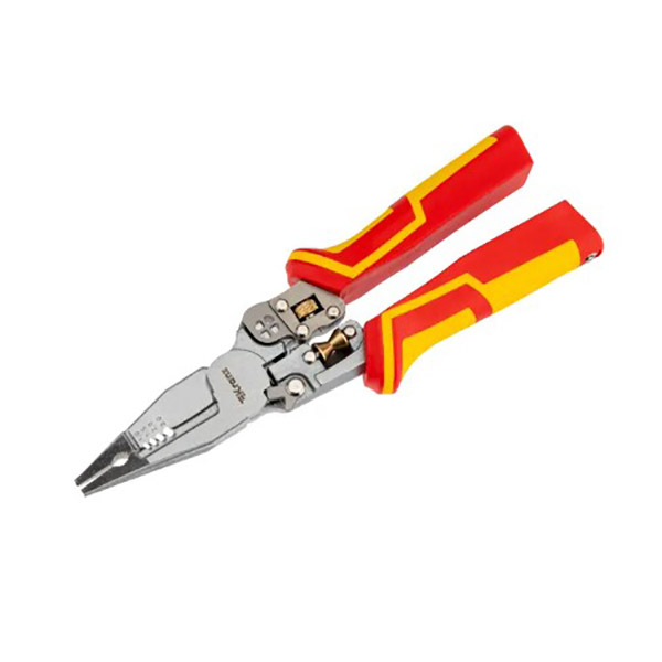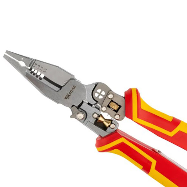 Многофункциональные диэлектрические плоскогубцы – это идеальный инструмент на все случаи жизни, включающий в себя: плоскогубцы, тонкогубцы, бокорезы, инструмент для зачистки кабеля, резак для проводов, инструмент для разделки и снятия оболочки, инструмент для скрутки кабеля, инструмент для обжима клемм, тестер для определения фазы-ноль. Плоскогубцы применяются для монтажных и кабельных работ, перекусывания проводов, а также для удаления изоляции. Используются для работы с оборудованием напряжением до 250 В – имеют удобную функцию определения фазного проводника контактным способом, предупреждают о высоком напряжении и защищают мастера от поражения электрическим током. Зоны захвата губок предназначены как для плоских, так и для круглых деталей, что делает инструмент многофункциональным. Плоскогубцы обладают отличной режущей способностью, подходят для резки/зачистки пластика, медных и мягких проводов, а также для обжима изолированных и неизолированных наконечников. Также подходят для зачистки кабеля от 1 до 3 мм², для обжима кабеля от 1,5 до 6 мм² и разделки оболочки кабеля от 1,5 до 10 мм². Высокое качество металла позволит сохранить инструмент в отличном состоянии на долгие годы.