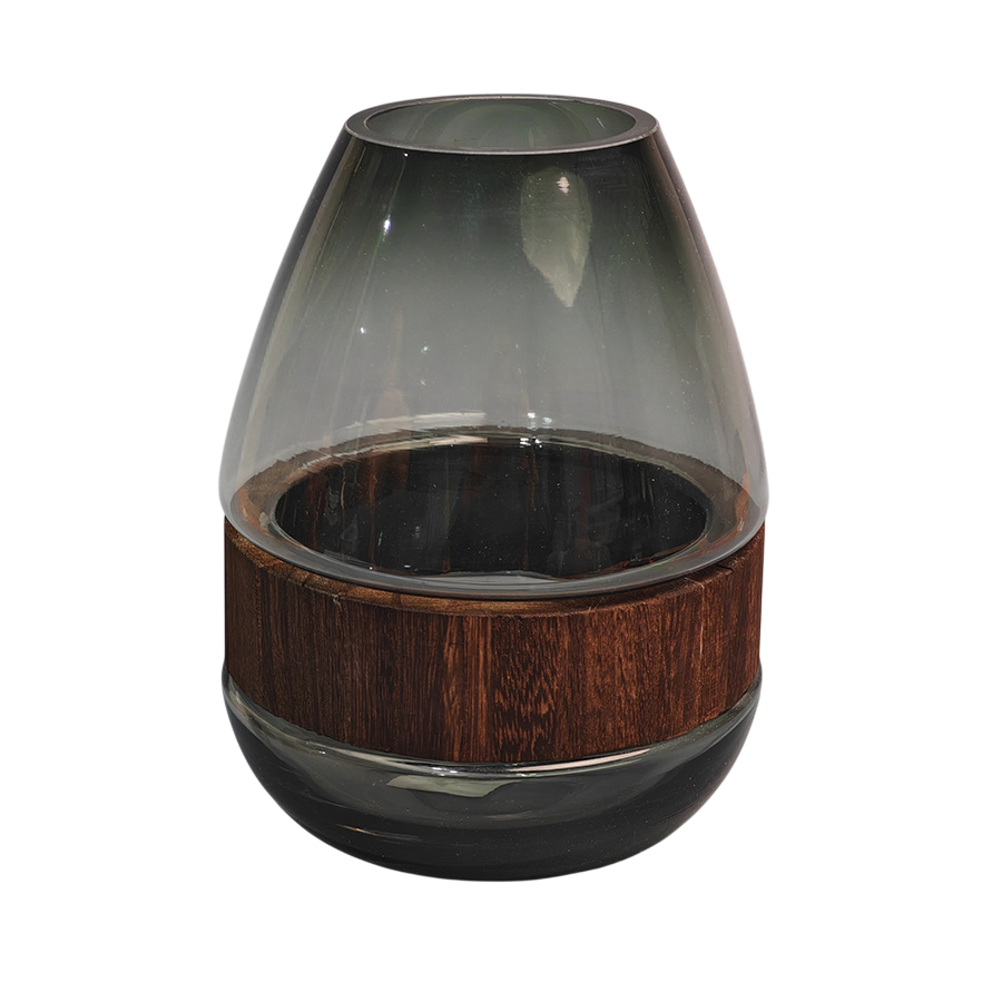 Элегантная стеклянная ваза с деревянной вставкой станет изысканным украшением вашего интерьера. Изготовленная из высококачественного стекла, она обладает гладкой поверхностью и утонченной формой, которая привлекает внимание и создает атмосферу уюта и стиля. Деревянное кольцо добавляет изделию естественности и теплоты, подчеркивая его уникальность и оригинальность. Ваза идеально подходит для живых цветов, декоративных веток или просто как самостоятельный элемент декора. Она станет прекрасным подарком для любителей стильных и функциональных предметов интерьера.