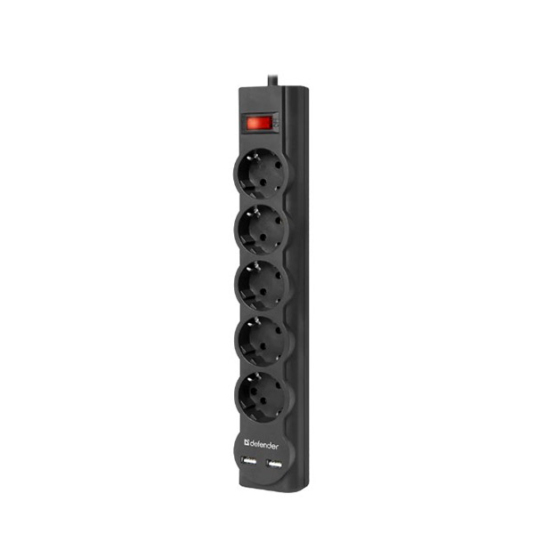 Фильтр сетевой DEFENDER DFS 751 2xUSB 5 гнёзд 1,8м