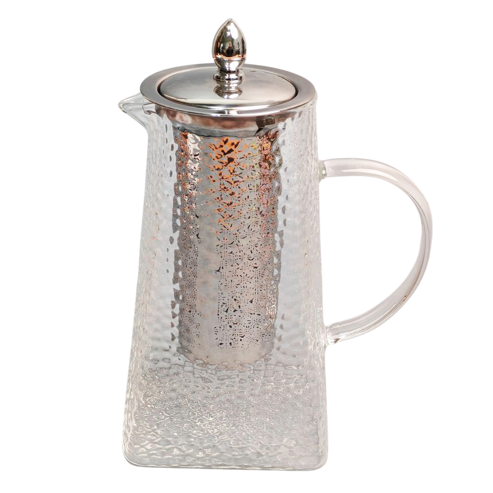 Стеклянный заварочный чайник с ситом — это стильное и практичное изделие для чаепития. Оформленный в классическом стиле, этот чайник может быть одинаково уместным как на домашней кухне, так и в ресторане. Металлическое сито эффективно задерживает даже самые мелкие частицы чая, обеспечивая чистый и ароматный напиток в каждой чашке.