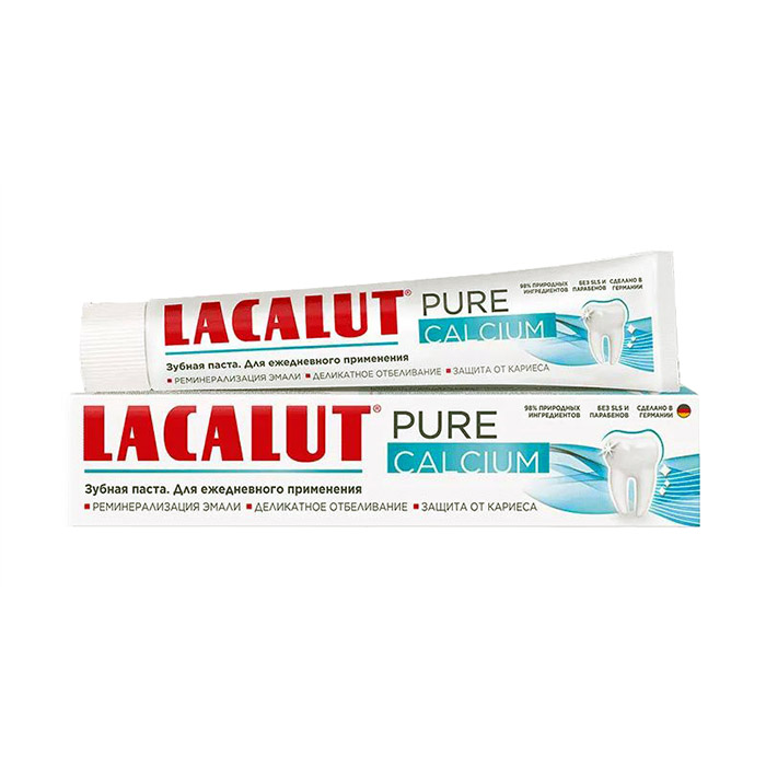 Зубная паста LACALUT® PURE CALCIUM c натуральной водой из цветков липы. Кальций реминерализует эмаль зубов, фторид защищает от кариеса. Мягкие абразивы устраняют пигментированный зубной налёт и сохраняют естественную белизну зубов.