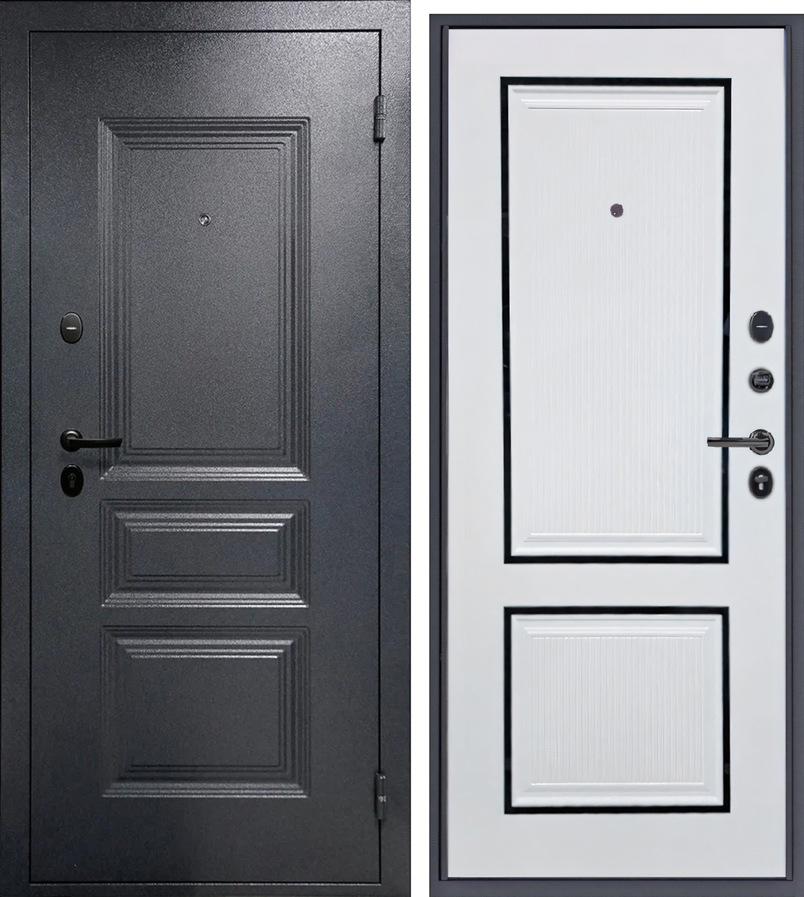 Дверь стальная ПРОМЕТ Титан L размером 2050х960 мм — надежное и стильное решение для вашего дома или офиса. Полотно двери выполнено из стали с наружным покрытием из порошкового полимерного состава цвета «букле графит». Внутренняя отделка дверного полотна — цвет «арктик», создающий элегантный и современный дизайн. Модель сочетает целостность конструкции с эстетикой, обеспечивая безопасность и привлекательный внешний вид.