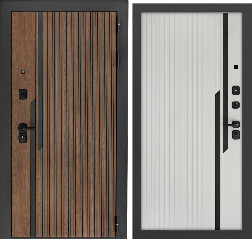 Дверь стальная ВОЛГА-БУНКЕР Karmina L 2050х860мм муар чёрный/орех американский/дуб беловежский