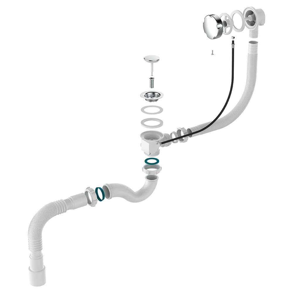 Артикул идет в комплекте с гофротрубой с универсальным выходом в канализацию 40/50мм. Скорость слива: 26 л/мин. Прокладки на выпуске выполнены из материала термоэластопласт (ТЭП), который не вступает в реакцию в акриловыми ваннами. Полная комплектация, все гайки, прокладки и схема установки в комплекте.