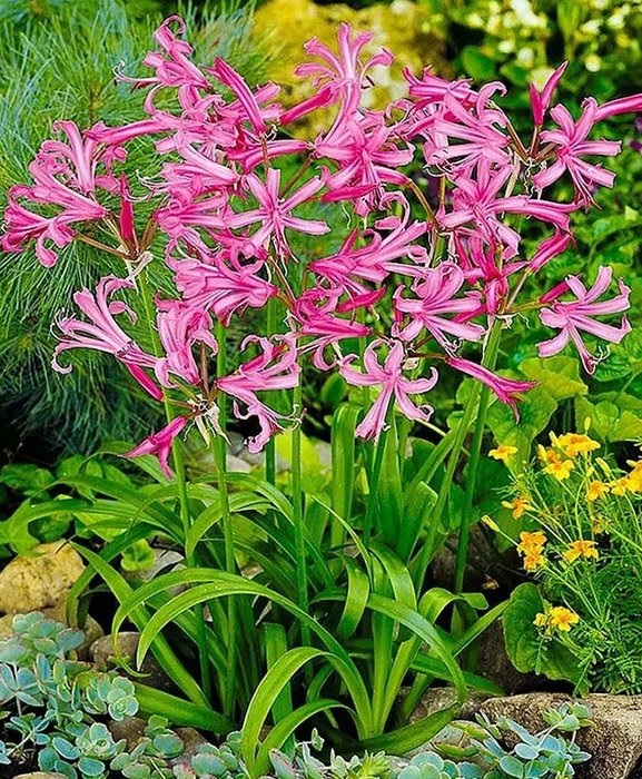 Род Нерине (Nerine) насчитывает около 30 очень характерных нежных луковичных травянистых видов с линейными, ремневидными листьями и соцветиями-зонтиками из многих цветков. Каждый цветок состоит из шести узких, волнистых по краю, отогнутых назад переливчатых скрученных лепестков различной, например, розовой, красной, белой окраски. На цветоносах высотой от 30 до 60 см нет листьев. Почти у всех видов, за исключением нерине волнистой, листья появляются после цветочной стрелки или одновременно с ней.