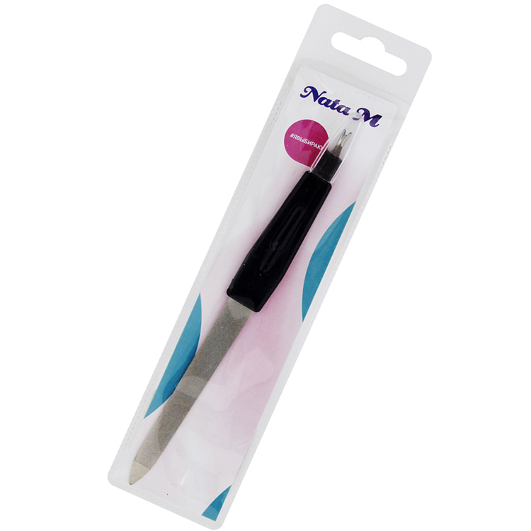Металлическая пилка для ногтей деликатно и эффективно ухаживает за естественными ногтями, аккуратно обрабатывает края ногтевых пластин, придавая необходимую форму и длину. Основание пилки можно использовать в качестве пушера для качественного и безопасного отделения кутикулы.