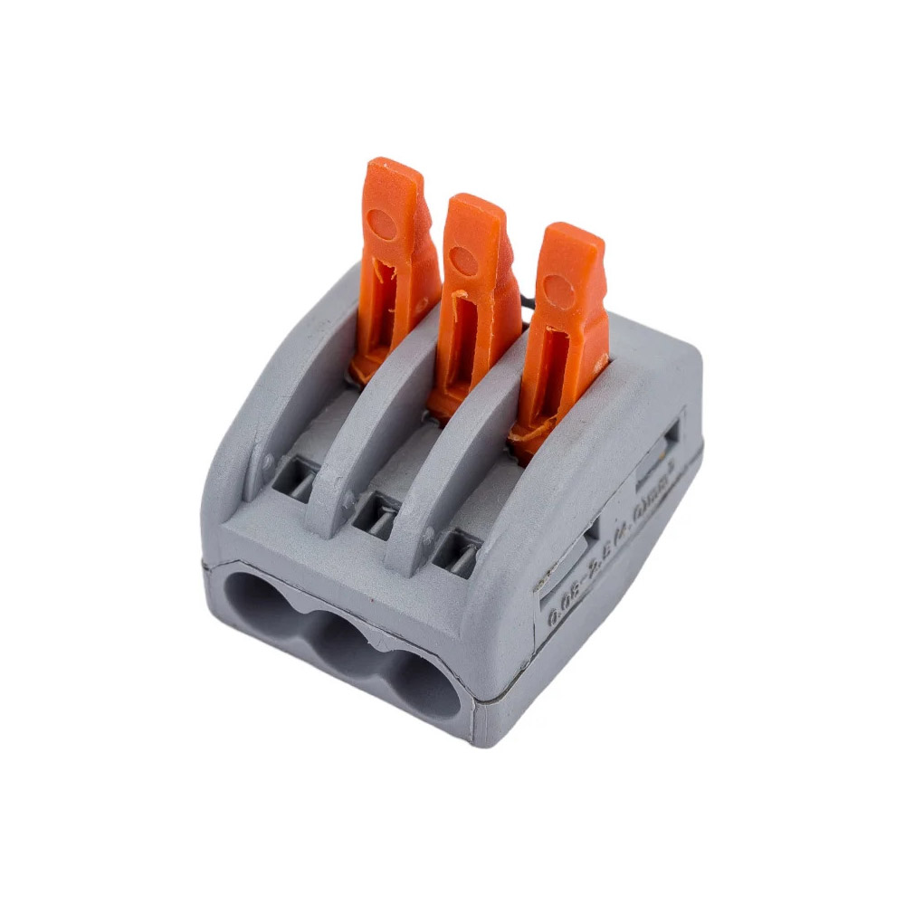 Клеммы с рычагом монтажные Navigator серии NTC-R предназначены для многоразового соединения медных одножильных проводников сечением 0.08–2.5 мм2 или многожильных проводников 0.08–4.0 мм2 с наконечниками- гильзами втулочными Navigator серии NET в электрических цепях переменного тока с частотой 50/60 Гц напряжением до 400 В, максимальный ток 32 А. Клеммы удобны в использовании, обеспечивают надежное подключение проводников.