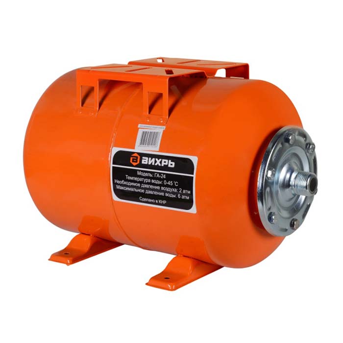 Гидроаккумулятор Вихрь ГА-24 поддерживает постоянный напор воды в системе, устраняя скачки давления и сокращает количество включений насоса, снижая энергопотребление. Гидробак поддерживает давление в диапазоне 2-6 атм, его объем составляет 24 литра. Он подходит для работы со скважинными насосами мощностью до 500 Вт и поверхностными насосами мощностью до 1 кВт.
