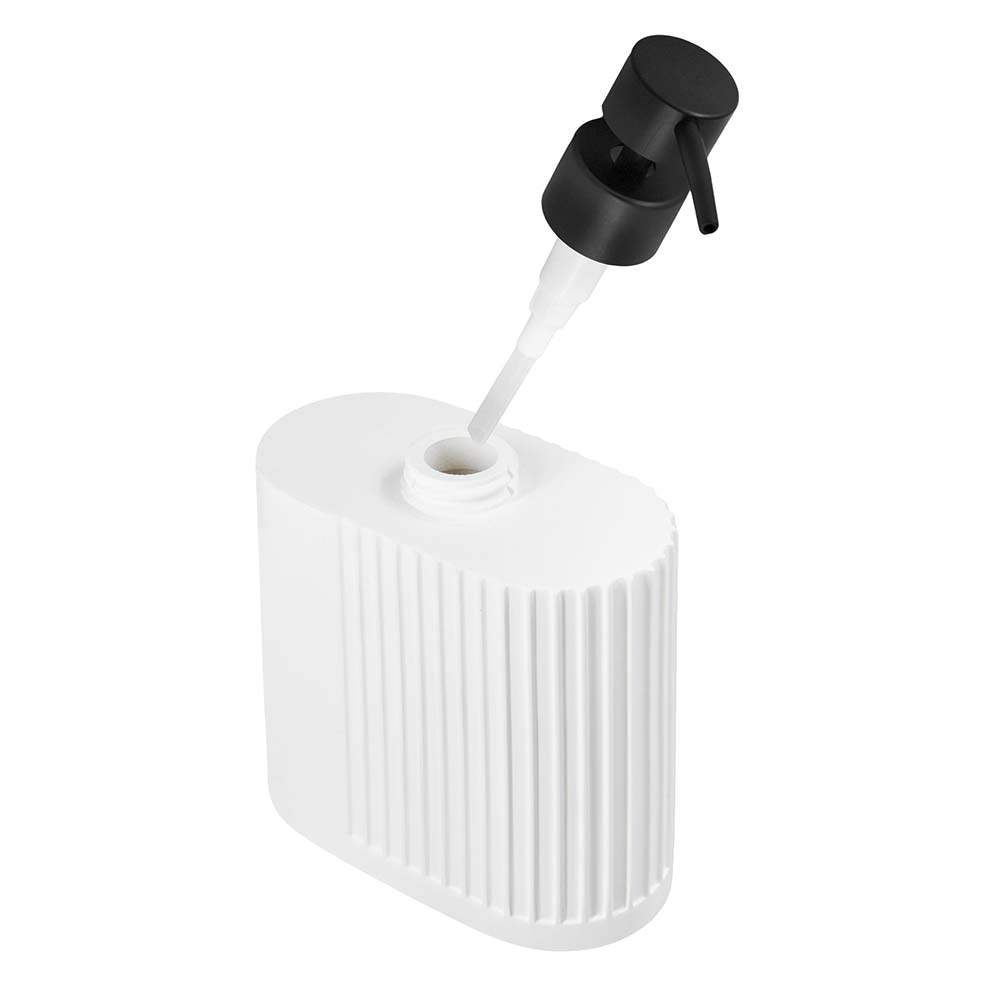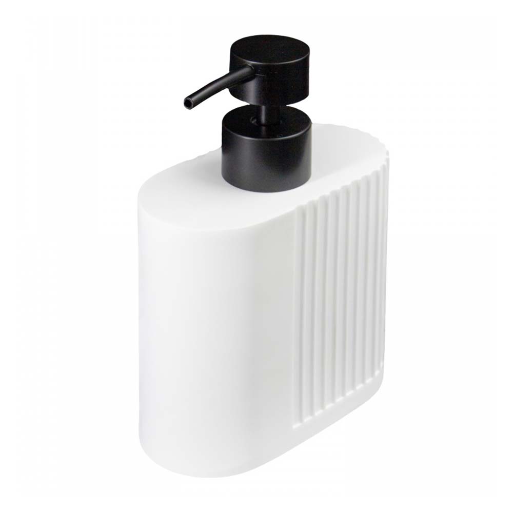 Дозатор для жидкого мыла, изготовленный из прочного и гигиеничного полирезина, оснащен надежной помпой черного цвета из ударопрочного пластика. Корпус обладает повышенной стойкостью к влаге и бытовой химии, а эргономичная помпа обеспечивает удобное и дозированное использование мыла. Компактная и лаконичная конструкция подходит для любого интерьера ванной комнаты или кухни, сочетая функциональность и современный дизайн.