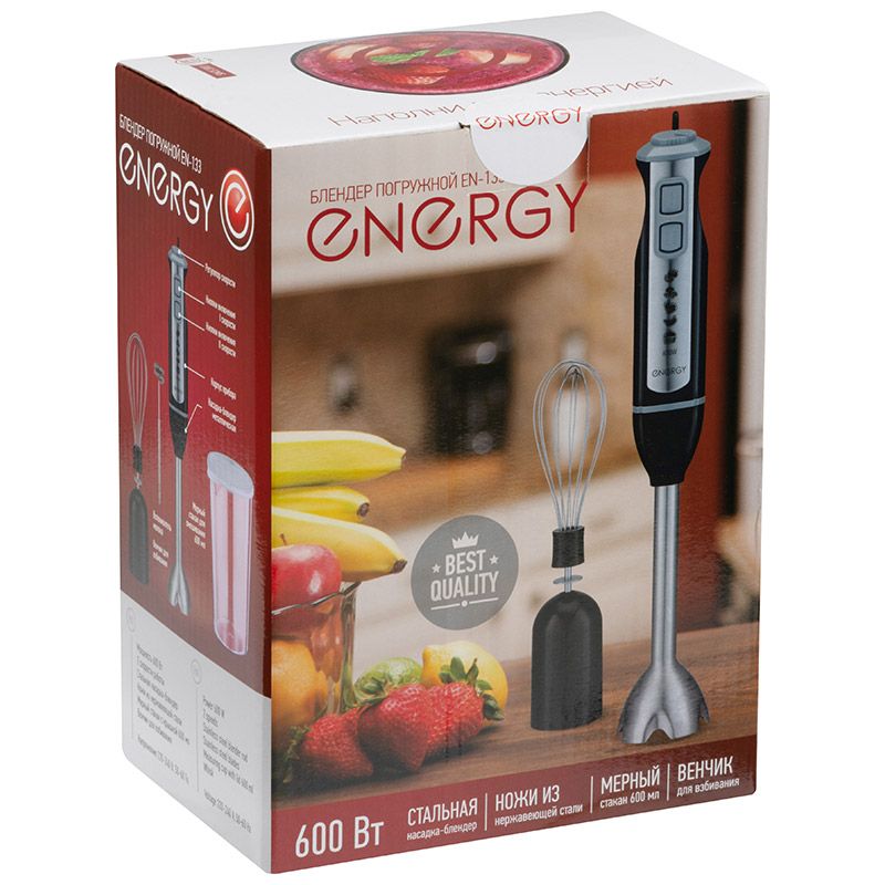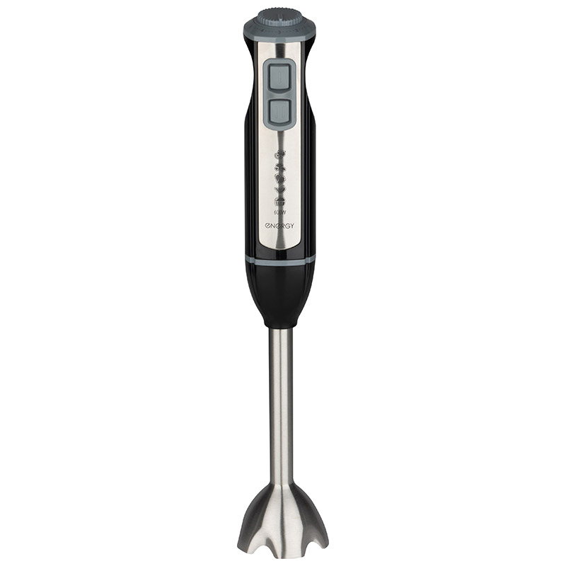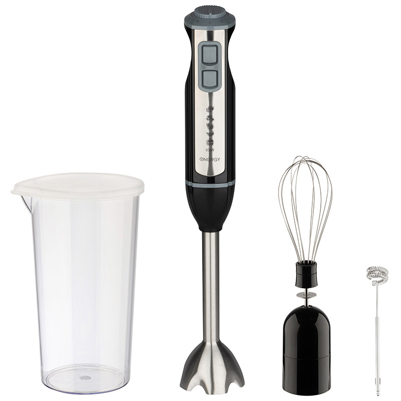 Компактный погружной блендер мощностью 600 Вт с металлической насадкой и ножами из нержавеющей стали. Имеет два режима работы (Обычный и Turbo) с регулировкой скорости. В комплекте венчик, вспениватель молока, мерный стакан 600 мл с крышкой и петля для подвешивания. Длина шнура 1,5 м.