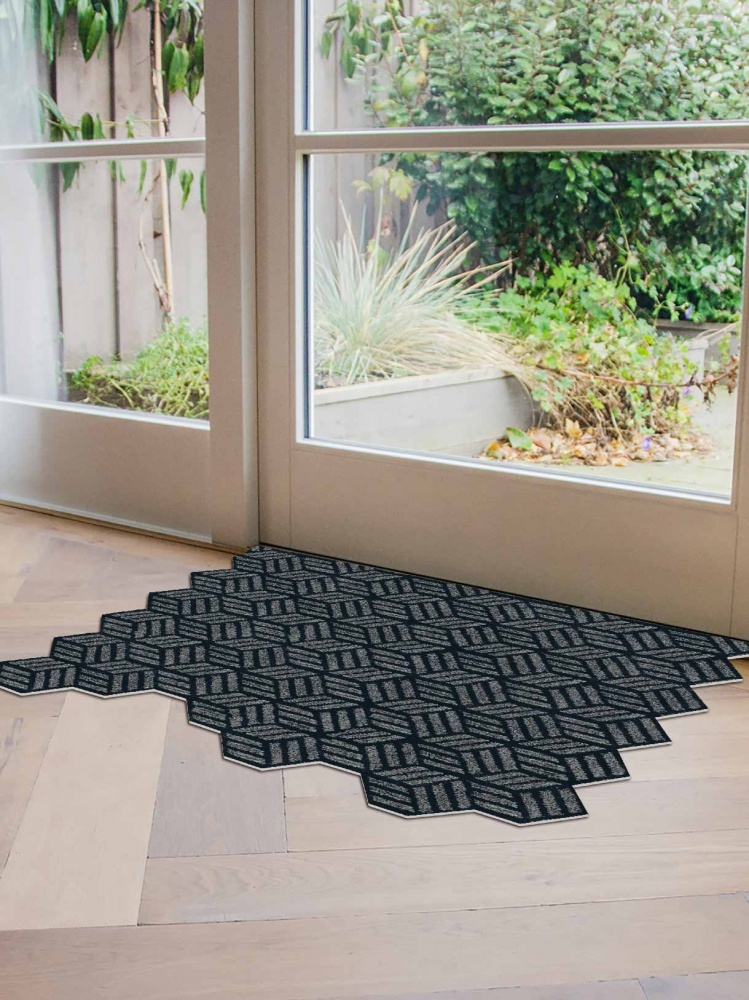 Коврик можно вырезать обычными ножницами под свой дверной проём.