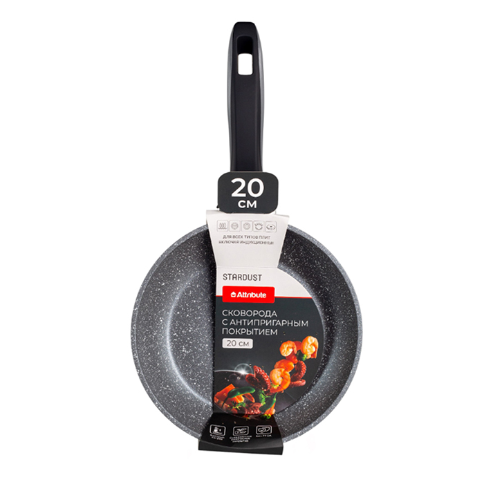 Кованые сковороды STARDUST — универсальная классика, которая не просто функциональна, но и приятна в использовании. Спокойный серый цвет легко впишется в любой интерьер, а внутреннее покрытие под гранит добавляет природной простоты. Отдельного внимания заслуживает ручка анатомической формы с покрытием Soft-touch — не скользит, приятна на ощупь, удобно держать в руке, а еще она не нагревается, поэтому дополнительные прихватки не нужны.