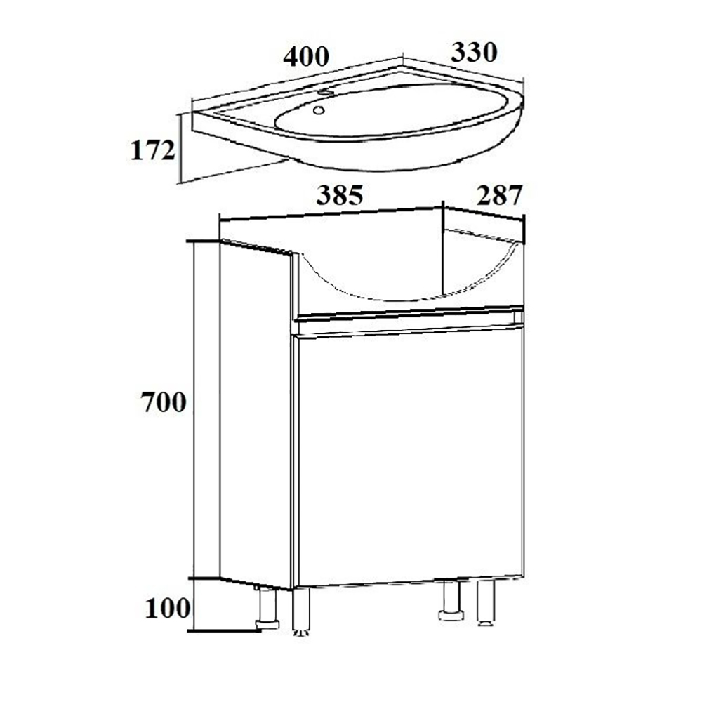 Тумба-умывальник LEAQUA Лада 40 + раковина Манго