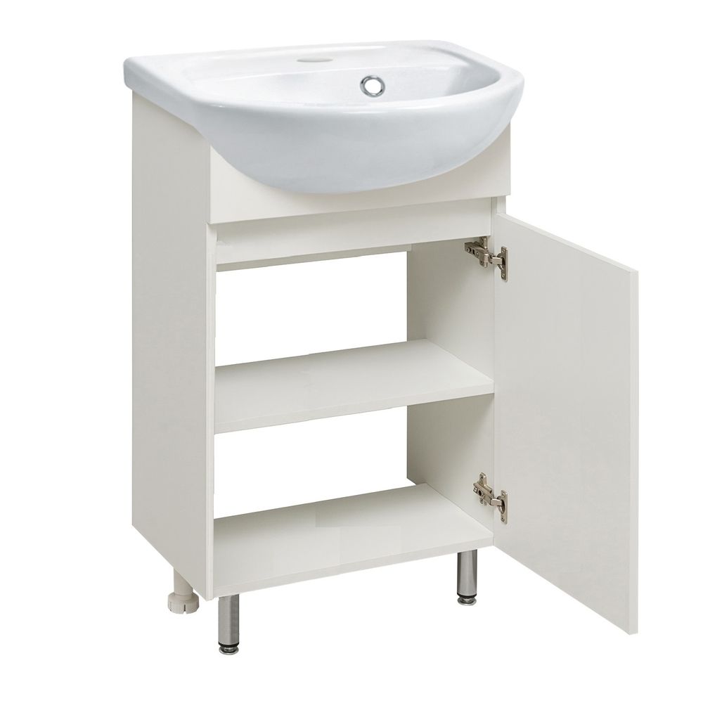 Тумба под раковину LEAQUA ЛАДА - модное и оригинальное решение для бюджетного оснащения ванной комнаты. Тумба для ванной ЛАДА (напольная) выполнена в классическом белом цвете. Тумба в ванную имеет распашную дверцу и одну внутреннюю полку. В комплекте идут петли со встроенным доводчиком, 2 хромированные и 2 пластиковые ножки. Тумба комплектуется раковиной из сантехнического фарфора Манго (400х330 мм). Мебель для ванной LEAQUA - красота и практичность в мелочах!