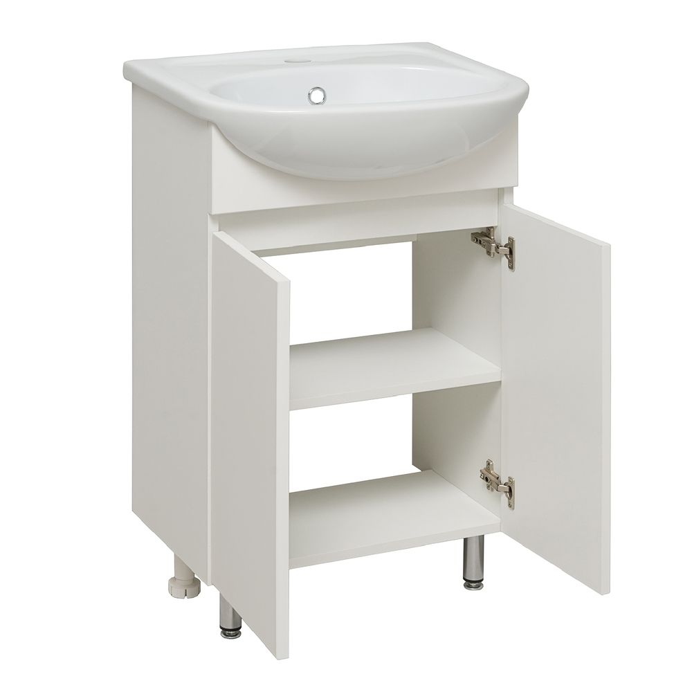 Тумба под раковину LEAQUA ЛАДА - модное и оригинальное решение для бюджетного оснащения ванной комнаты. Тумба выполнена в цвете - классическом белом. Тумба в ванную комнату имеет две распашные дверцы и одну внутреннюю полку. В комплекте идут петли со встроенным доводчиком, 2 хромированные и 2 пластиковые ножки. Тумба комплектуется керамической раковиной "Уют". Мебель для ванной LEAQUA - красота и практичность в мелочах!
