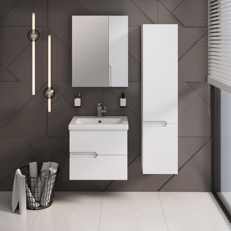 Шкаф-колонна — это компактный подвесной шкаф с двумя отделениями, закрывающимися распашными дверками. Верхнее отделение оборудовано двумя встроенными полками, нижнее — одной, что обеспечивает удобное и рациональное использование пространства. Модель выпускается только в правом исполнении. Мебель для ванной LEAQUA - красота и практичность в мелочах!