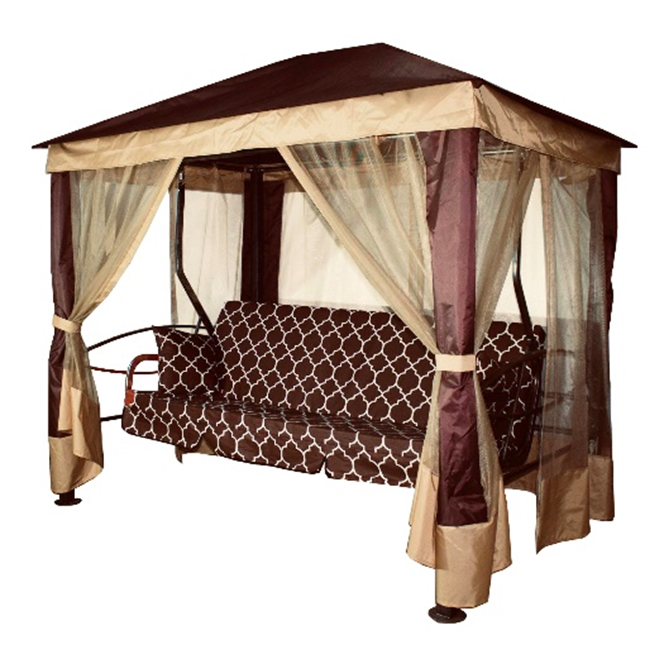 Эти садовые качели-шатер созданы для комфортного отдыха на свежем воздухе в компании семьи или друзей. Они представляют собой многофункциональную зону для расслабления, чтения или спокойной беседы.