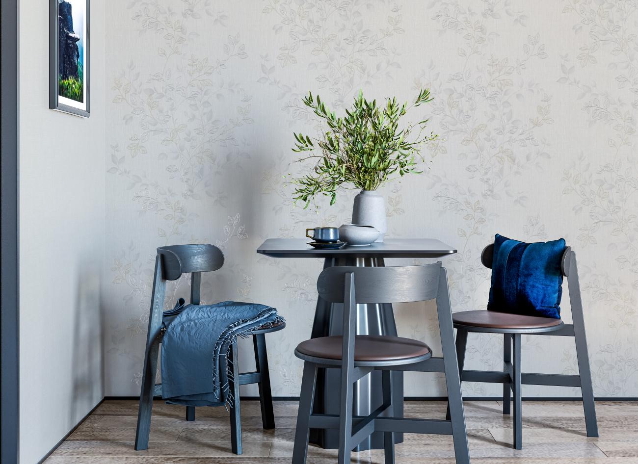 Многоуровневая композиция добавляет воздушности и ритма. Многоплановая композиция в виде изящных листьев и ветвей, которые слегка колышутся от ветерка, смотрится легко и воздушно. Линии рисунка окутывают мягким романтичным настроением, а сам природный мотив находит свое продолжение в нежном акварельном исполнении.