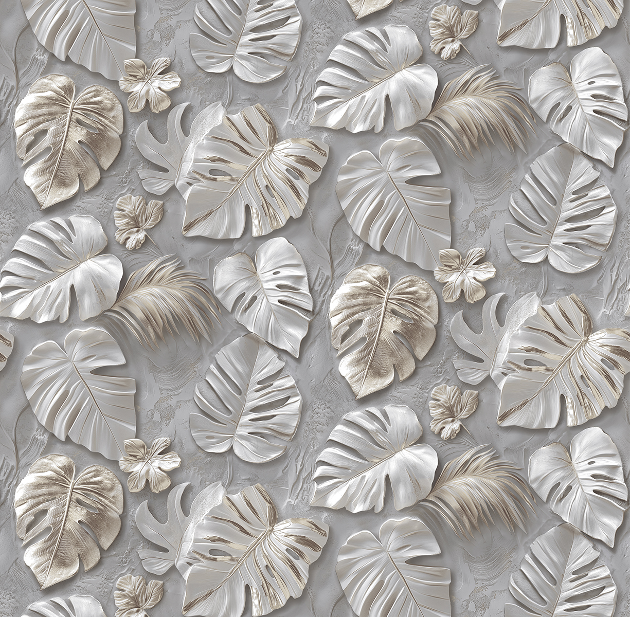 MADEIRA универсальна: она способна стать ярким акцентом в гостиной, создать атмосферу курорта в спальне или добавить динамики в современное рабочее пространство. Цветовая палитра включает трендовые комбинации: от мягких природных оттенков до благородных контрастов с золотом. Трёхмерный эффект объёмных листьев создаёт ощущение будто они выходят за пределы стены. Благородные металлизированные акценты подчеркивают фактуру и делают рисунок живым, а игра света добавляет глубину и динамику.
