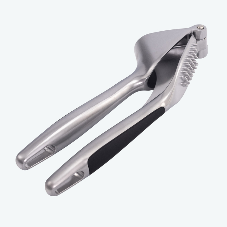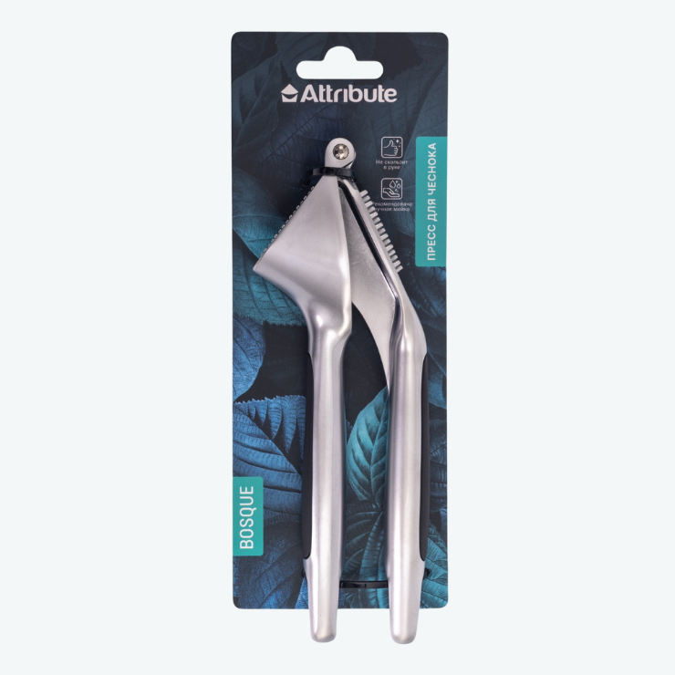 Bosque – стильная и долговечная коллекция аксессуаров для кухни. Изготовленные из усиленного цинкового сплава, изделия отличаются надежностью и долговечностью. Металлический корпус изделий со стильными антискользящими вставками, не ржавеет, не окисляется, не облезает. Легко моется. Эргономичный дизайн – удобно лежит в руке. На прессе ровные зубчики, которые легко очищаются.