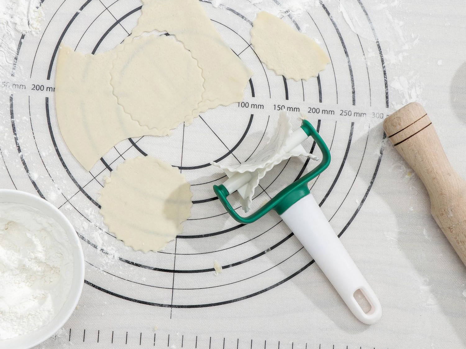 Этот кондитерский инструмент представляет собой фигурный роликовый валик, предназначенный для нарезки пласта теста на ровные круги с волнообразными краями. Рабочая поверхность изготовлена из качественного пластика, который хорошо прорезает тесто и не прогибается. Подходит для приготовления вареников, пельменей и печенья.