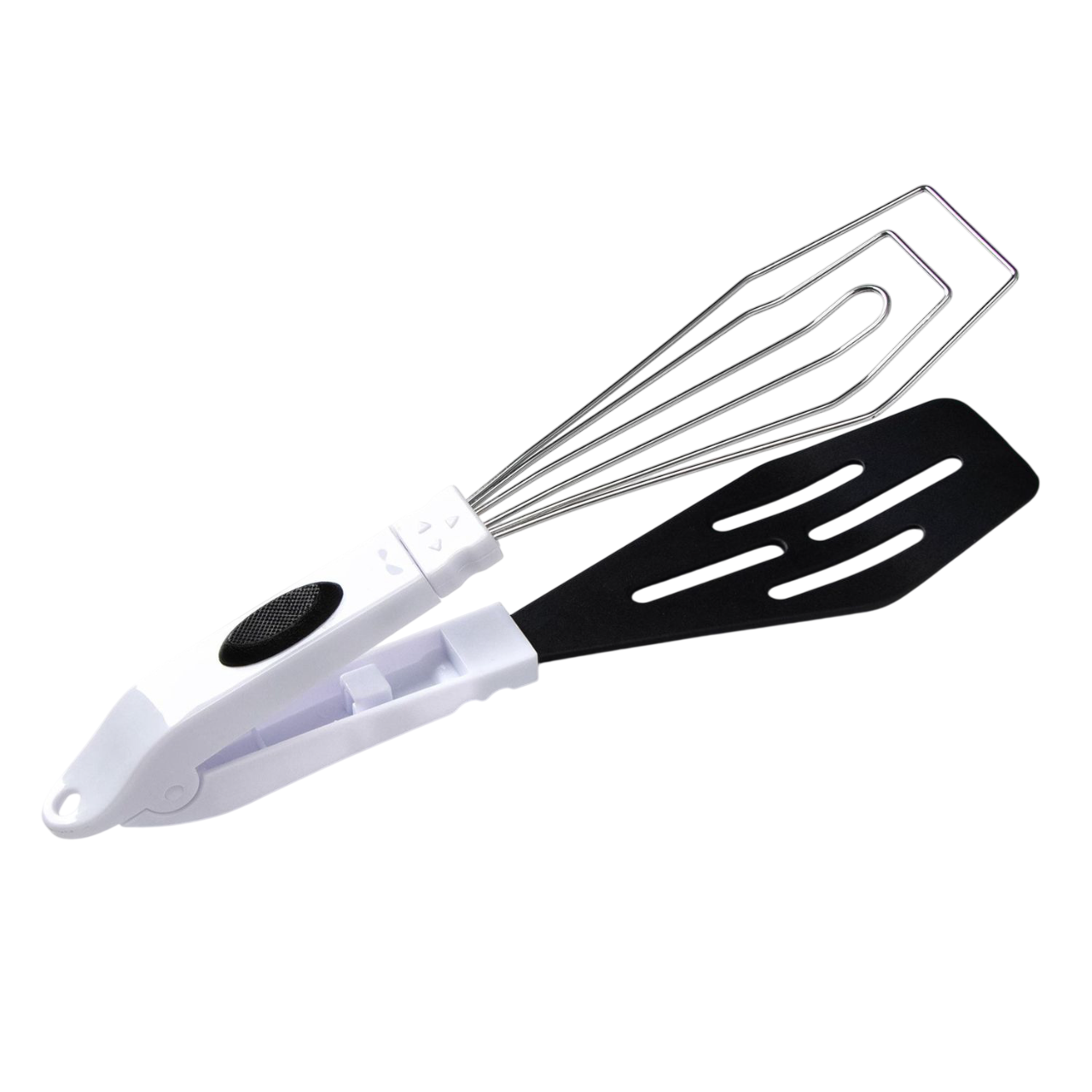 Двойная лопатка с держателем способна совместить в себе функциональность сразу двух предметов кухонного инвентаря: лопатки и щипцов. Используется для широкого спектра задач: переворачивания мяса, рыбы, яиц, блинов, оладий, а также для сервировки и перекладывания готовых блюд на тарелку.