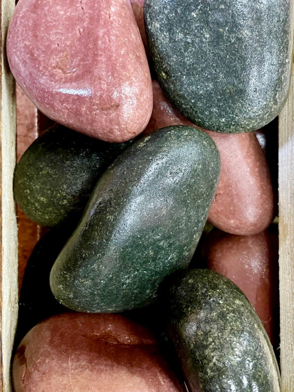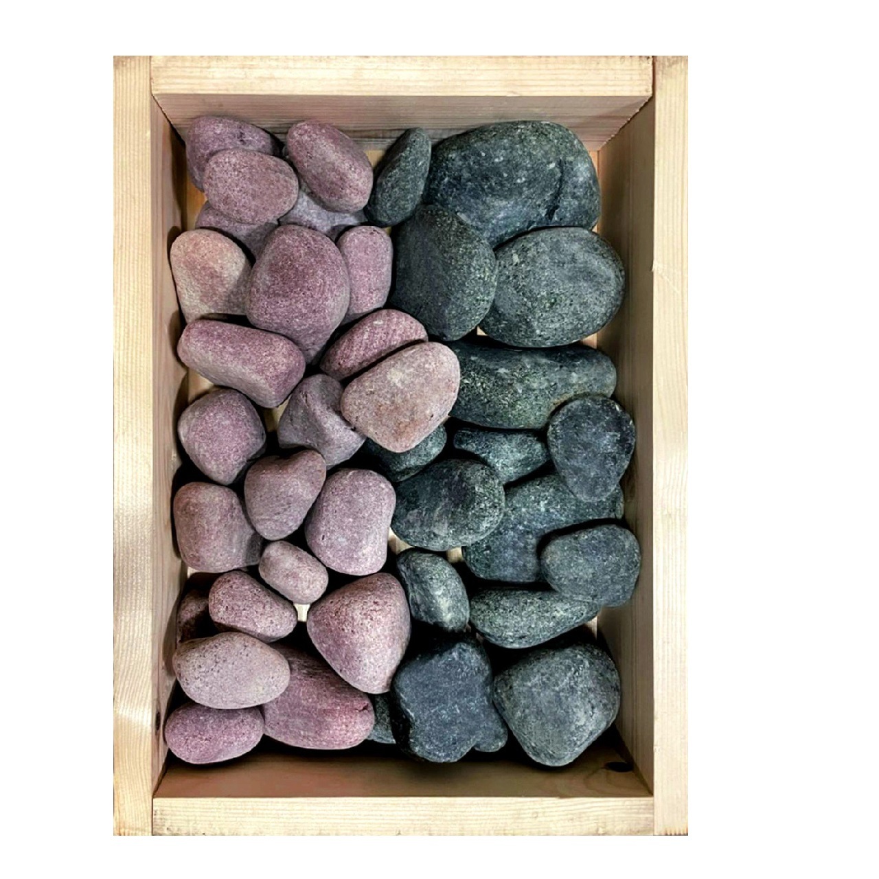 Камень для бани ОГНЕННЫЙ КАМЕНЬ Сила двух Оливин + малиновый кварцит