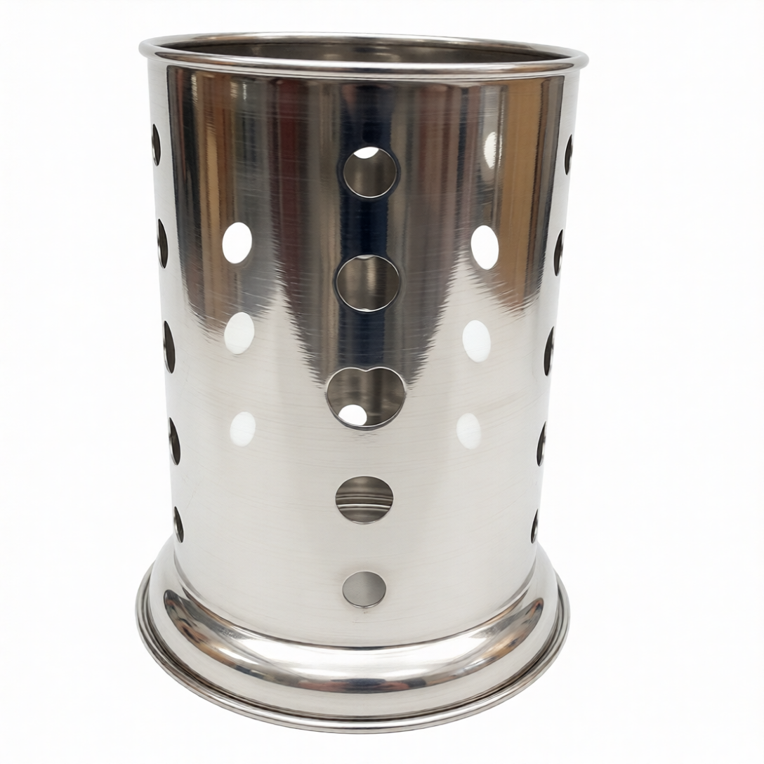 Имеет небольшие отверстия для отвода лишней влаги. Универсальный дизайн и форма позволяют использовать подставку как для хранения кухонной утвари, так и для канцелярских принадлежностей, а также предметов хобби и творчества.