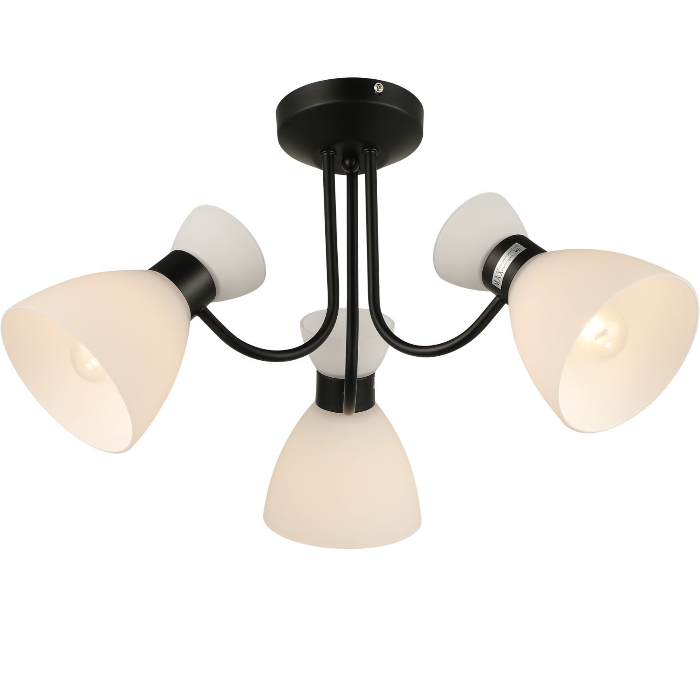 Люстра классическая 20135/3BK WT от бренда ЭкономСвет. Каркас выполнен из материала металл, цвет черный. Плафоны (светорассеиватели) выполнены из материала стекло, цвет белый. Цоколь E27 рассчитан на лампы максимальной мощности до 60 Вт, а максимальная площадь освещения составит до 7 м².
