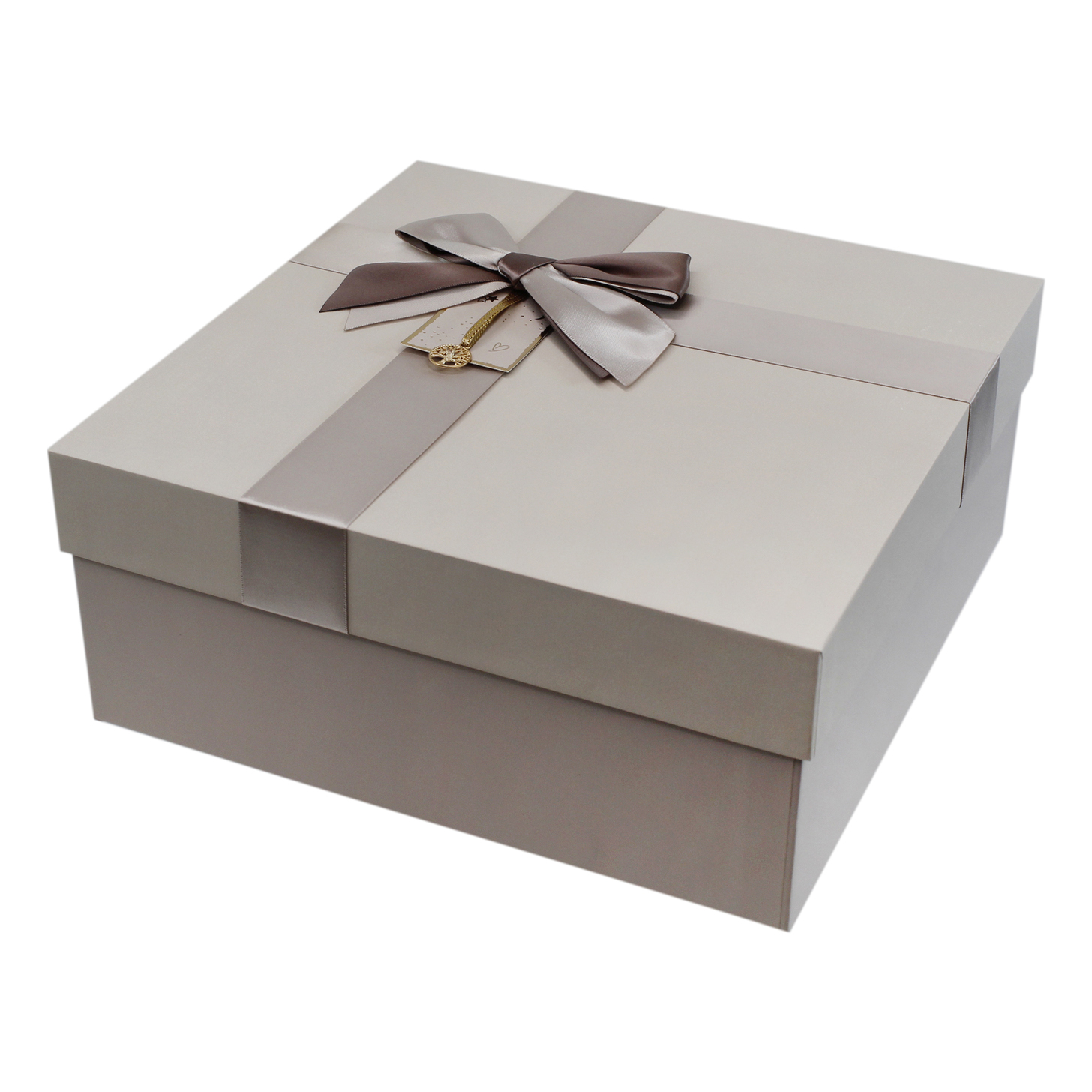 Подарочная коробка из плотного картона. Крышка имеет слегка блестящую поверхность, декорирована атласными лентами и бантом. Нижняя часть коробки гладкая, матовая. Отличный вариант для упаковки подарков! Это стильный и практичный аксессуар для упаковки подарков, который подчеркнет вашу заботу о близких и добавит особого шарма любому подарку.