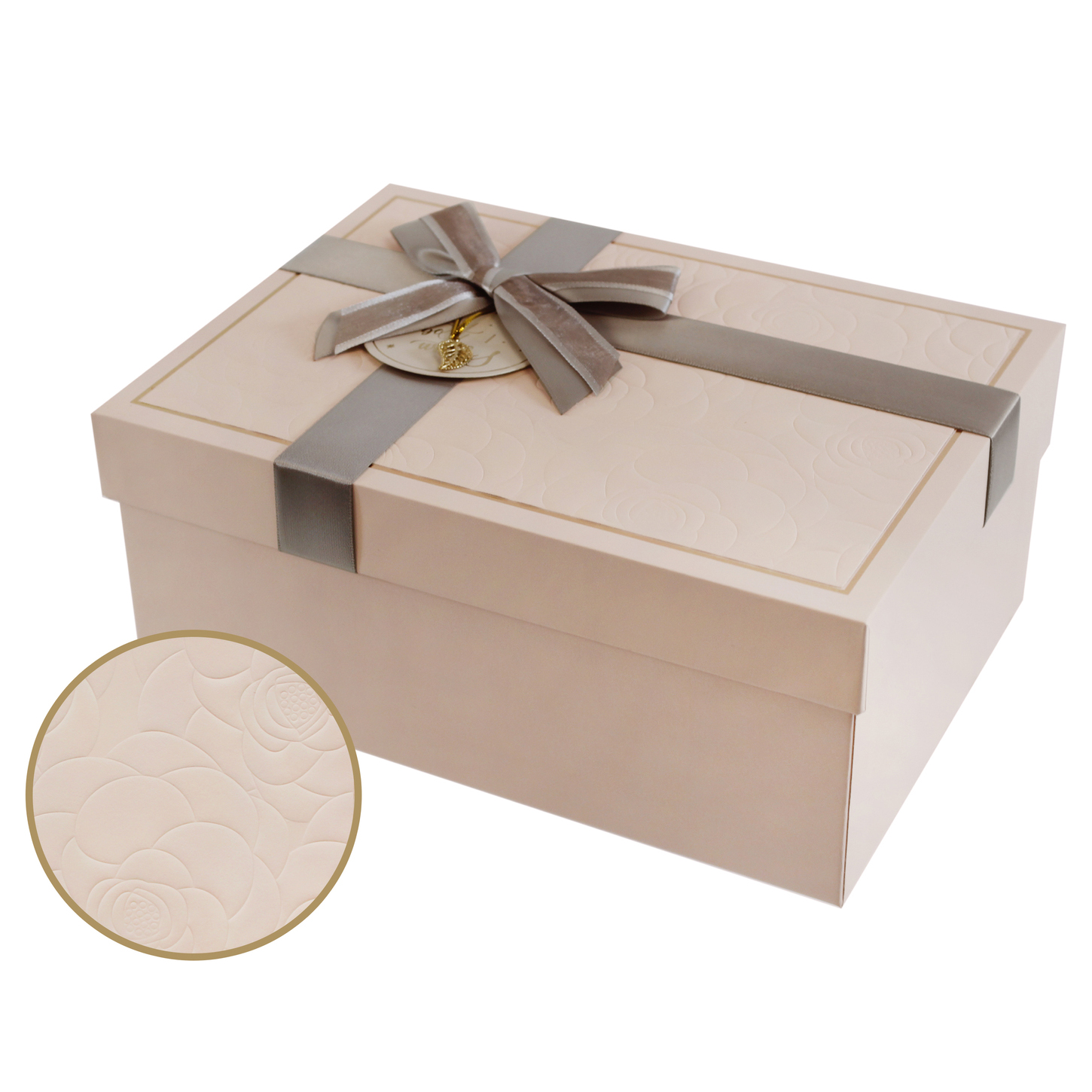Подарочная коробка из плотного картона, матовая поверхность. Крышка декорирована вставкой с тиснением, атласными лентами и бантом. Отличный вариант для упаковки подарков. Это стильный и практичный аксессуар для упаковки подарков, который подчеркнет вашу заботу о близких и добавит особого шарма любому подарку.