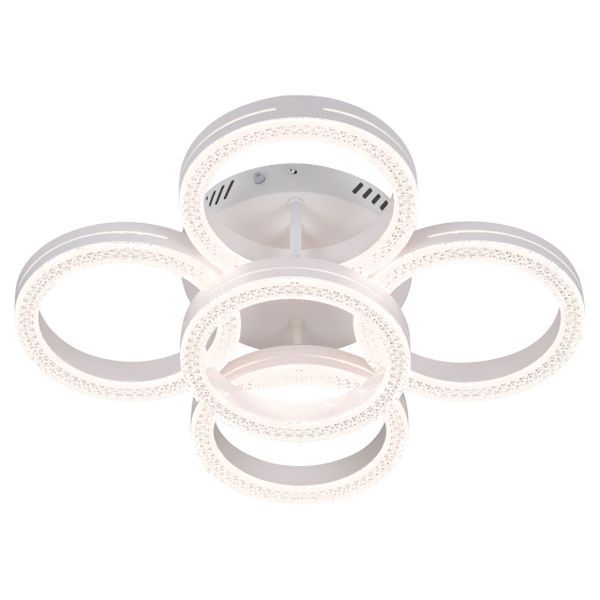 Серия потолочных светодиодных светильников-колец в белом цвете с рельефным акрилом. Мощность 75 Вт, регулируемая цветовая температура от 3000 до 6000К. В комплекте пульт дистанционного управления для удобной настройки освещения. Стильное и функциональное решение для современного интерьера.