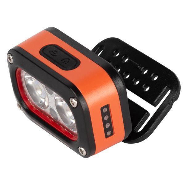 Эргономичный и легкий корпус с регулируемым оголовьем обеспечивает комфортную посадку. Фонарь питается от аккумулятора типа Li-pol, что гарантирует долгую автономную работу. Оранжевый цвет корпуса делает его хорошо заметным, снижая риск потери.