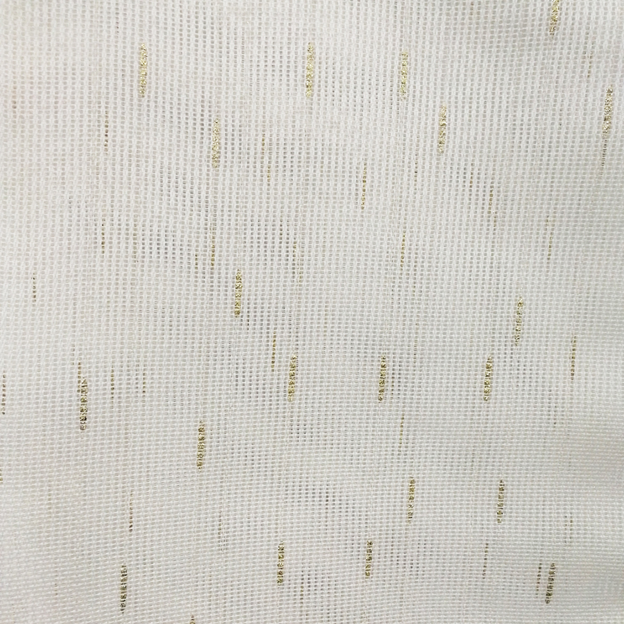 Легкий прозрачный тюль ,рисунок в виде штришков с золотой ниткой,равномерно расположен по всему полотну, оформлен утяжелителем. Цвет: молоко с золотистой ниткой. Легкая прозрачная ткань рассеивает солнечный свет, создавая уютную и комфортную атмосферу в комнате. Хорошо держит форму, пропускает воздух и солнечные лучи. Структура ткани придает воздушность и прозрачность, а рисунок тюля придает уют. Прекрасно смотрится как с портьерами, шторами, так и самостоятельно, отдельно.