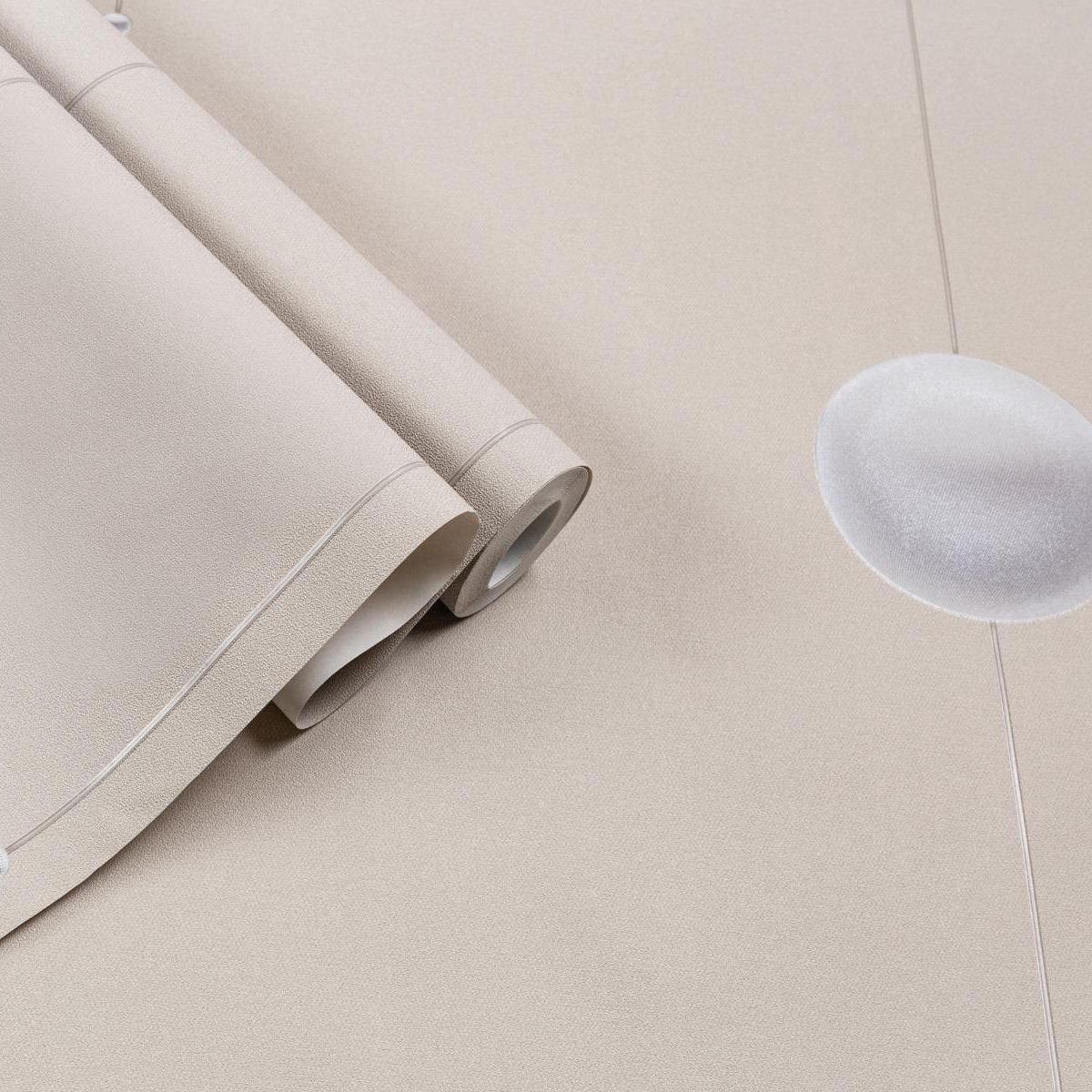 Объемные шары в узоре Ultrachrome 2 покрыты многослойным декором с прозрачным металлизированным сиянием. Благодаря деликатной игре света и тени кажется, что серебряные шары подвешены за нити в пространстве. В производстве использована технология прокрашенного в массе винила. Это дает невероятную глубину цвета и позволяет клеить полотна без белых швов. Обои устойчивы к УФ-лучам, а прокрашенный в массе пластизоль не боится трения и царапин.