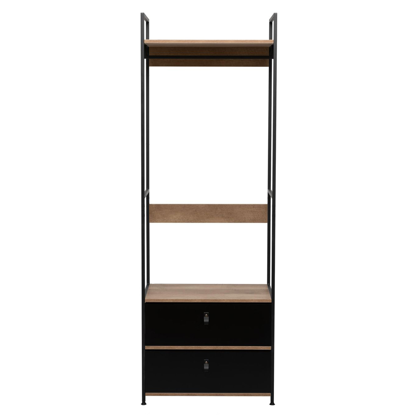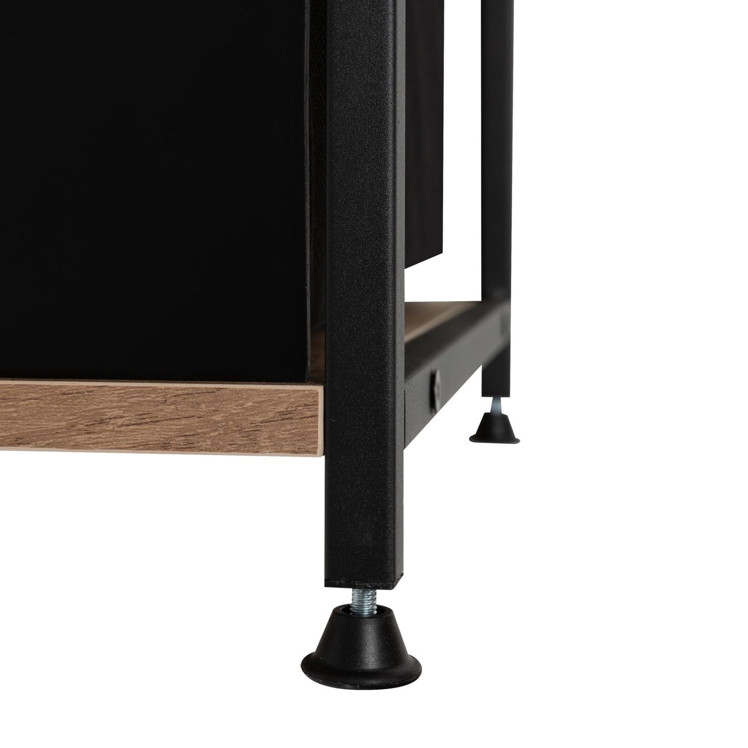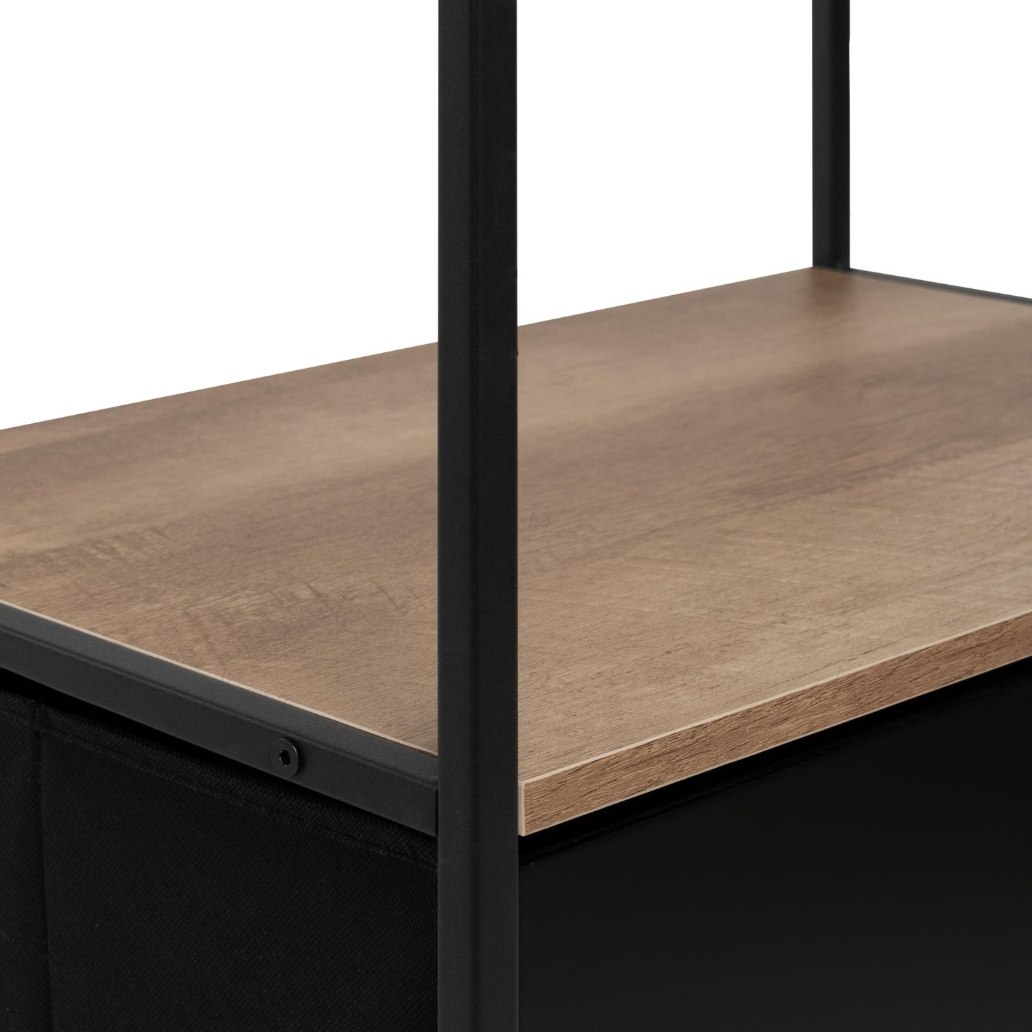 Эта напольная вешалка отлично подойдет для хранения одежды в прихожей. Она позволяет компактно размещать верхнюю одежду, головные уборы и сумки, а также организовать аксессуары. Каркас изготовлен из стальной профильной трубы, что обеспечивает устойчивость и долговечность под нагрузкой. Полки выполнены из ЛДСП — практичного материала, устойчивого к умеренным нагрузкам и простого в уходе.
