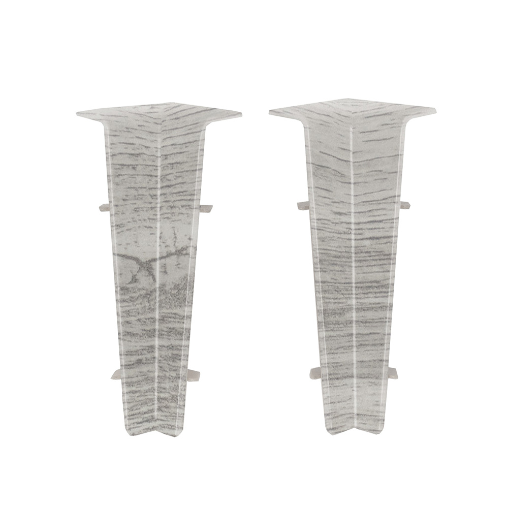 Угол внутренний — декоративный элемент, которой потребуется купить для монтажа пластикового напольного плинтуса. Обычно в помещении чётное количество углов, поэтому этот аксессуар продаётся комплектом из двух штук. Изделие устанавливают в последнюю очередь, уже после того как плинтус прикрепят к стене. Оно имеет конструкцию, позволяющую поставить его на место без применения клея или самореза, простым нажатием сверху вниз.